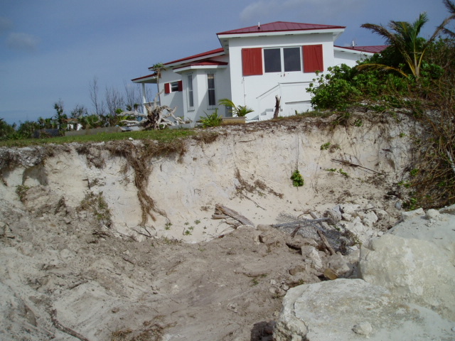 | Beach erosion, with our wonderful neighbors, Susie & Al's, house in the background. |